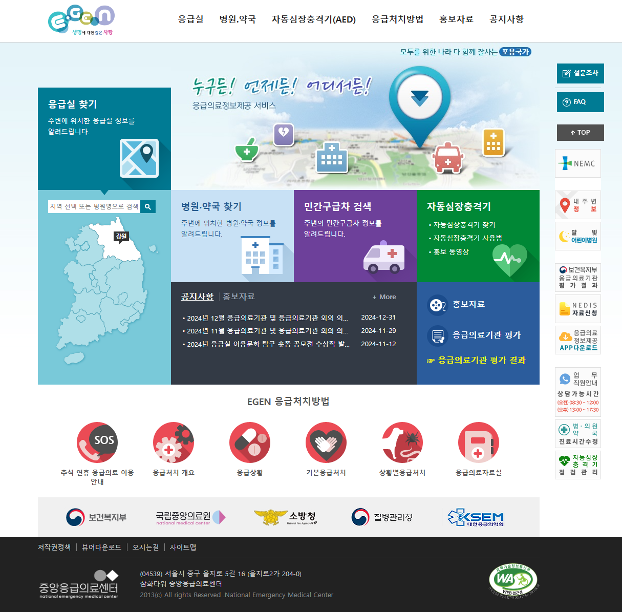 서울외 타 지역의 경우 아래의 응급의료정보포털 E-Gen 어플에서 확인하시면 됩니다.